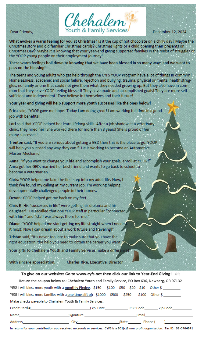 Your gifts to Chehalem Youth and Family Services make a difference!